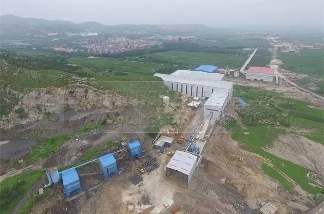 上圖為河北白沙時產(chǎn)3000噸骨料生產(chǎn)線遠觀圖,破碎車間、篩分車間、成品料庫車間部采用封閉生產(chǎn)的方式,并配備有完備的除塵設(shè)備,在占地上部利用山勢,不占用耕地面積。