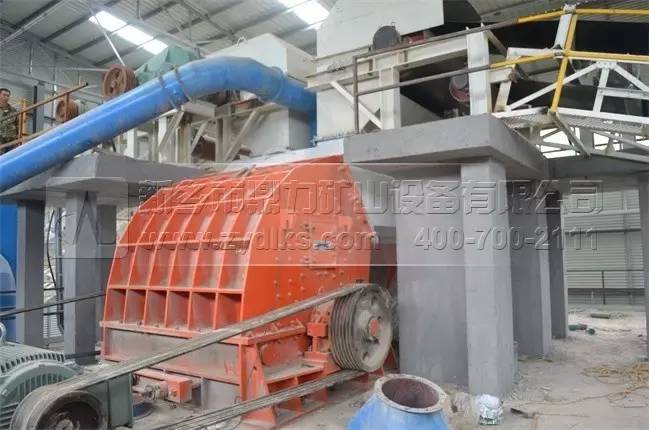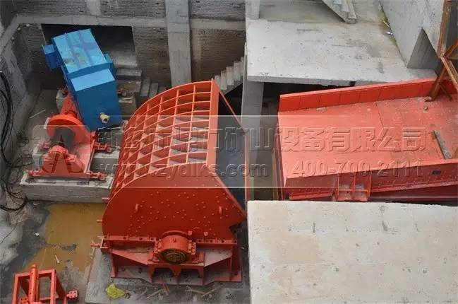 上圖為生產(chǎn)線上配置的頭破設(shè)備,選用的型號為內(nèi)目前錘式破碎機單臺產(chǎn)量的PCZ2125破碎機設(shè)備,單臺時產(chǎn)量可以達到2500噸以上,是由我們公司自主研發(fā)生產(chǎn)的。