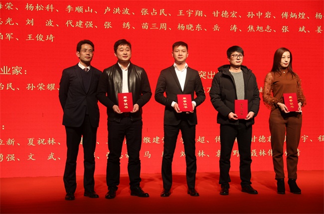 中譽(yù)鼎力智能裝備有限公司董事長張治民(中)上臺取“青年企業(yè)家”證書