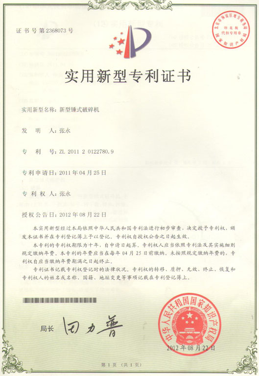在公司高層導(dǎo)的英明決策和體員工的共同努力下,河南省新鄉(xiāng)鼎力礦山機(jī)械設(shè)備有限公司積向家知識(shí)產(chǎn)權(quán)總局申請(qǐng)的自主研發(fā)的“錘式破碎機(jī)”新,順利通過(guò)相關(guān)部門的驗(yàn)收,獲得此項(xiàng)的證書。這將成為內(nèi)礦山機(jī)械行業(yè)新的里程碑,預(yù)示著智能化、化的礦山開(kāi)采時(shí)代已經(jīng)來(lái)臨。