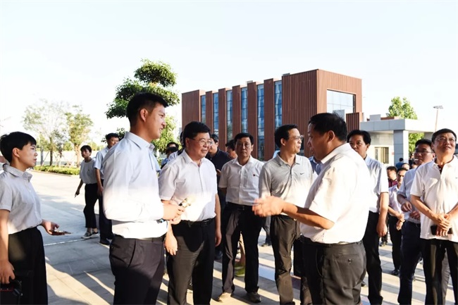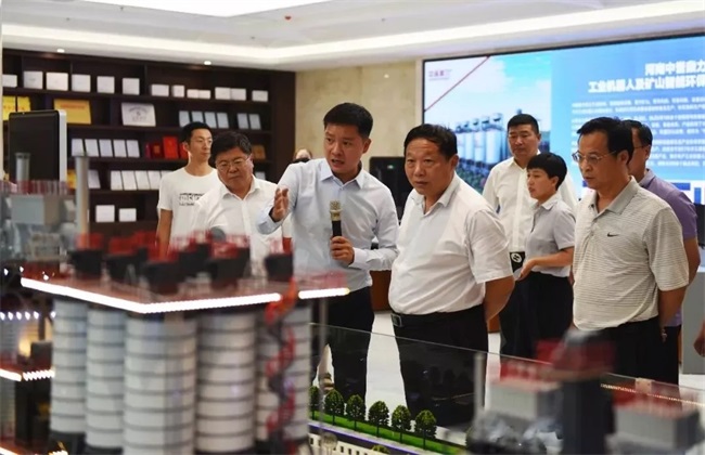 7月25日下午,新鄉(xiāng)市委副書記、市長王登喜帶市市直局委、縣級導(dǎo)干部蒞臨中譽鼎力調(diào)研,衛(wèi)輝市市長范士富及衛(wèi)輝市環(huán)保局、科工信局、發(fā)改委等相關(guān)部門負(fù)責(zé)人隨同觀摩。河南中譽鼎力智能裝備有限公司董事長張治民、副總經(jīng)理原文秋等人現(xiàn)場接待,并匯報公司各項情況。