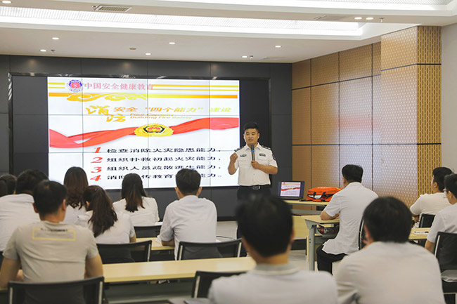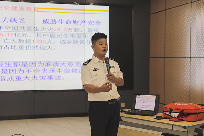 在之后的消防安知識培訓(xùn)講座上,張?zhí)m濤教官從實際案例出發(fā),圍繞消防安“四個能力建設(shè)”、應(yīng)急處置程序和逃生技巧等內(nèi)容進行了詳細而具體的講解。