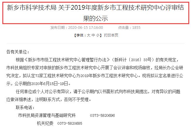 近日,新鄉(xiāng)市科學技術局發(fā)布《關于2019年度新鄉(xiāng)市工程技術研究評審結(jié)果的公示》。根據(jù)《新鄉(xiāng)市市級工程技術研究管理暫行辦法》(新科計〔2016〕33號)有關規(guī)定,科學技術局組織開展了“2019年度新鄉(xiāng)市工程技術研究”申報工作。