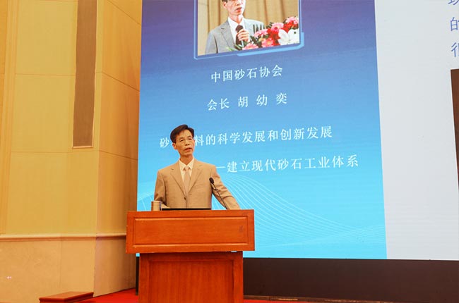 之后,中砂石協(xié)會(huì)會(huì)長(zhǎng)胡幼奕作題為《砂石骨料的科學(xué)發(fā)展和創(chuàng)新發(fā)展——建立現(xiàn)代砂石工業(yè)體系》的主旨演講。