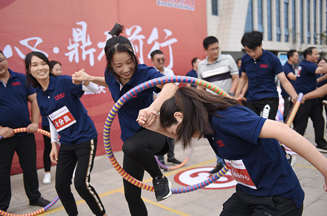 而在團(tuán)體賽環(huán)節(jié),一圈到底的默契傳遞、蜈蚣競走的嚴(yán)謹(jǐn)配合以及拔河大對抗的群體力量博弈……無一不彰顯出鼎力人團(tuán)結(jié)協(xié)作、敢于爭先的奮斗精。