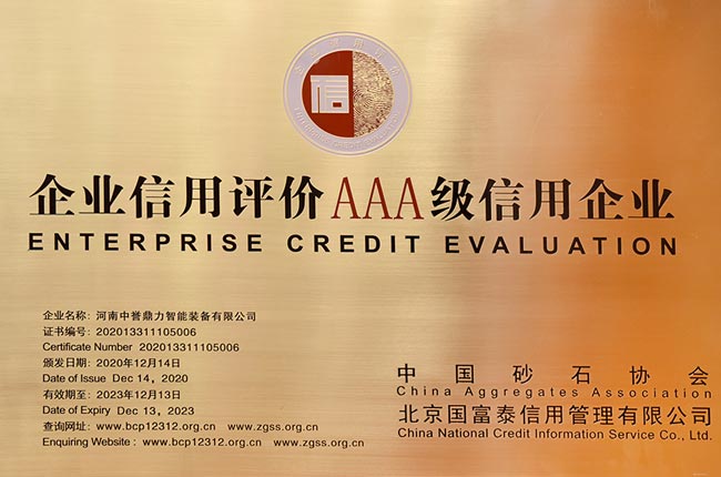 14日下午,在中砂石協(xié)會2020年年會上,協(xié)會副會長緱海榮公布了2020年度中砂石行業(yè)企業(yè)信用等級評價結(jié)果,河南中譽鼎力智能裝備有限公司被評為AAA級信用企業(yè)。