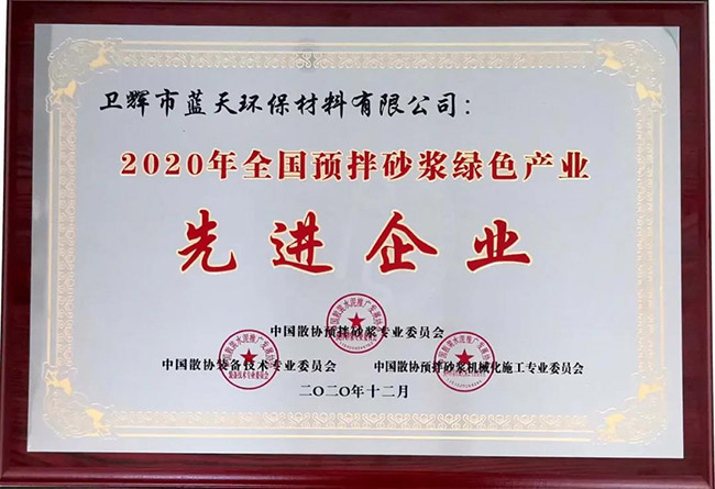 年度表彰環(huán)節(jié),衛(wèi)輝市藍天環(huán)保材料有限公司作為新鄉(xiāng)市5家成功入選企業(yè)之一,喜獲“2020年預拌砂漿綠色產(chǎn)業(yè)企業(yè)”榮譽表彰!