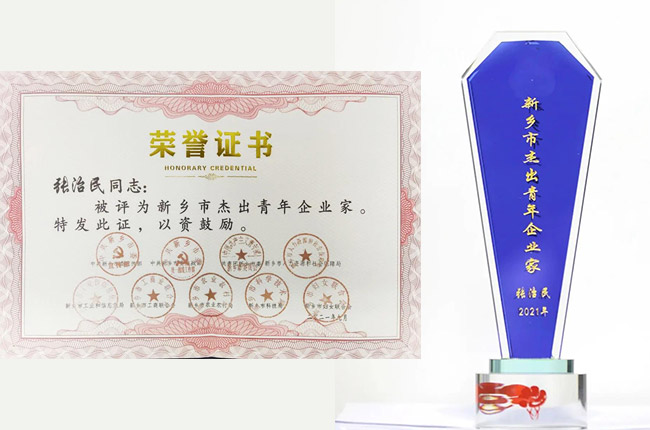 表彰會上,河南中譽(yù)鼎力智能裝備有限公司董事長張治民被授予“新鄉(xiāng)市杰出青年企業(yè)家”榮譽(yù)稱號!