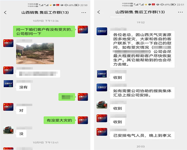 一方有難、八方支援,心系山西、共克時艱。剛剛經(jīng)歷過7月份衛(wèi)輝特大暴雨和洪澇的河南中譽(yù)鼎力智能裝備有限公司感同身受。山西特大暴雨剛發(fā)生,公司山西服務(wù)人員便迅速行動,時間電話詢問合作客戶生產(chǎn)線的受災(zāi)情況,在對客戶表示關(guān)心慰問的同時,深入細(xì)致地了解客戶生產(chǎn)線的各種問題和具體需求,及時提供幫助。