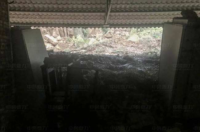 位于山西省呂梁孝義市的時產(chǎn)1000噸砂石骨料生產(chǎn)線,由河南中譽(yù)鼎力智能裝備有限公司EPC承建。受本次山西持續(xù)強(qiáng)降雨影響,該生產(chǎn)線的配電室被雨水沖毀,客戶損失嚴(yán)重,無法正常生產(chǎn)。