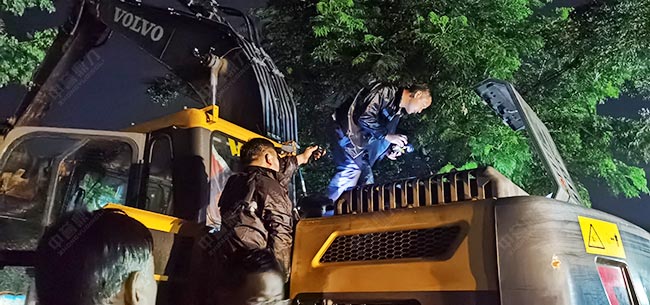 7月27日晚,排水槽施工現(xiàn)場(chǎng),施工人員正在進(jìn)行車(chē)輛檢查