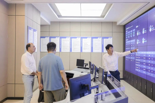 在中譽(yù)鼎力綠色建材大數(shù)據(jù)中心,大衛(wèi)多夫?qū)χ悄艿V山管控平臺(tái)表現(xiàn)出來濃厚的興趣。李觀本對(duì)客戶提出的問題進(jìn)行了專業(yè)的解答。