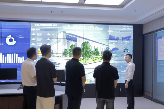 在中譽(yù)鼎力綠色建材大數(shù)據(jù)中心和智能化大廳,王順?lè)、杜凡新先介紹了中譽(yù)鼎力的企業(yè)情況、產(chǎn)品研發(fā)、智能礦山、建材業(yè)務(wù)等內(nèi)容。參觀團(tuán)先后了解了中譽(yù)鼎力在智能礦山管理、建材線上交易、綠色建材產(chǎn)業(yè)園等方面的成果和應(yīng)用。