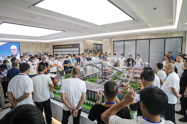 在智能裝備公司綜合辦公樓,考察團(tuán)先后參觀了中譽(yù)鼎力企業(yè)文化墻和多位一體循環(huán)建材產(chǎn)業(yè)園項(xiàng)目沙盤,并觀看了公司相關(guān)宣傳片,對(duì)中譽(yù)鼎力主營(yíng)業(yè)務(wù)及近年來(lái)發(fā)展情況有了進(jìn)一步了解。