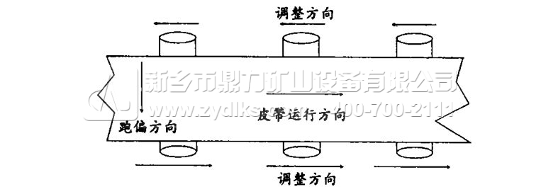 上圖為皮帶機跑偏調(diào)整的示意圖