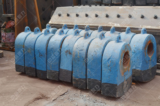 1)當破碎物料的粒度較大時,錘頭所承受的沖擊載荷也較大,因此,應(yīng)選擇合金的高強高錳鋼,其韌性可安使用;