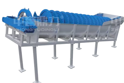 電動機帶動螺旋開始轉(zhuǎn)動,砂石進(jìn)入到水洗槽中,在螺旋葉片的帶動下翻轉(zhuǎn),砂石快速的與水?dāng)嚢枞诤,使物料中的泥土等雜質(zhì)與砂分離,清洗掉的雜質(zhì)隨著溢流管流出,清洗干凈的砂石在螺旋葉片的帶動下,推到高出的出料口排出水洗槽,完成砂石清潔。