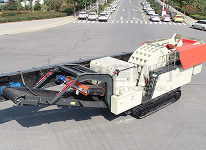 履帶式移動(dòng)破碎站的破碎、篩分、液壓、發(fā)動(dòng)機(jī)等模塊均安裝在移動(dòng)底盤上,可以在普通公路和較復(fù)雜地區(qū)靈活移動(dòng)