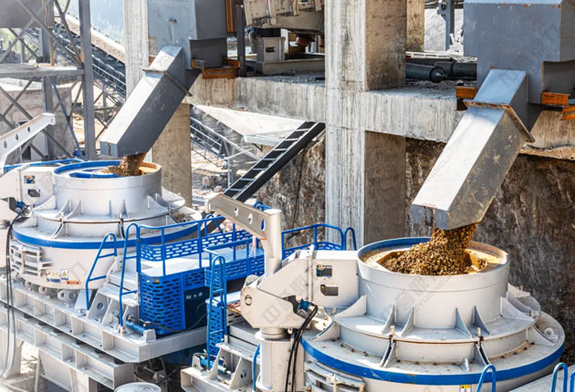 · 部分5-20mm碎石→米石緩沖倉(2000噸)→沖擊破(制砂/米石)→三級篩分(篩洗同步)