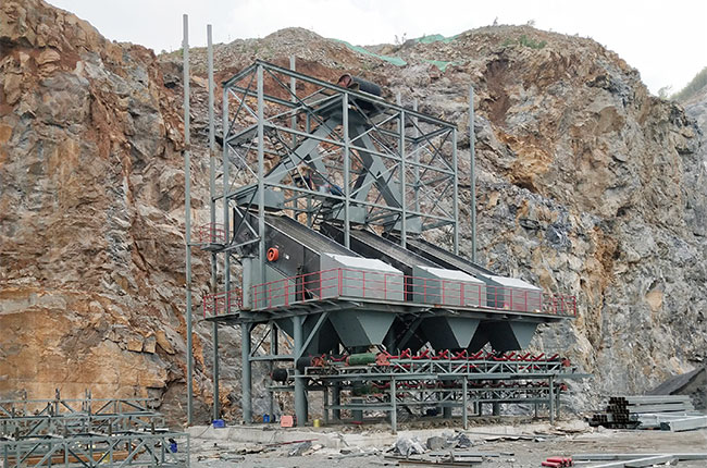 2)對(duì)于生產(chǎn)能力較大時(shí)(>時(shí)產(chǎn)250噸),粗碎與次破碎之間需置中轉(zhuǎn)料堆,一是使次破碎機(jī)械能夠滿負(fù)荷運(yùn)行,提升工作效率,二是以避免機(jī)器維護(hù)、檢修等時(shí)期時(shí)能保持正常生產(chǎn)。