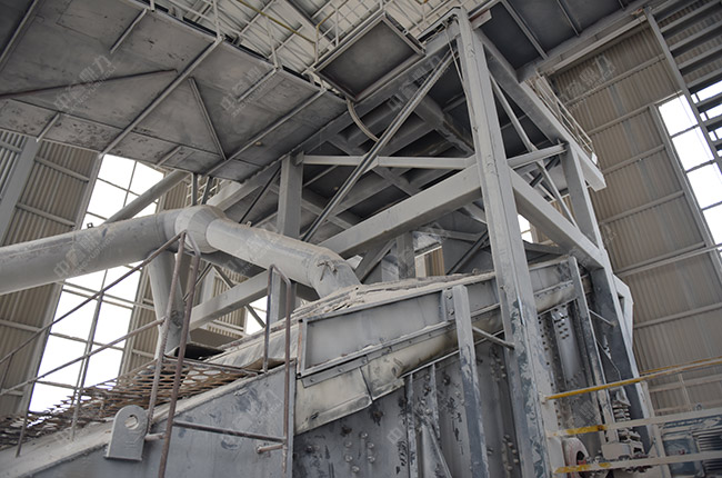 生產(chǎn)線負(fù)責(zé)人朱總告訴我們,這條時產(chǎn)1500噸環(huán)保型砂石生產(chǎn)線設(shè)備為化花園式廠區(qū),滿目綠蔭、鳥語花香、干凈整潔,地面部做硬化處理。