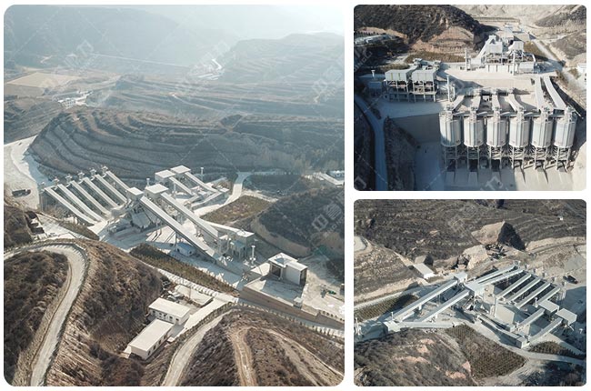 鑫錦威建材有限公司時(shí)產(chǎn)1500噸砂石生產(chǎn)線鳥(niǎo)瞰圖,時(shí)值初冬,植被泛黃