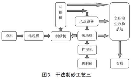 圖3表示砂石分選設(shè)備布置在制砂機下料位置,先選粉再粉碎制砂。